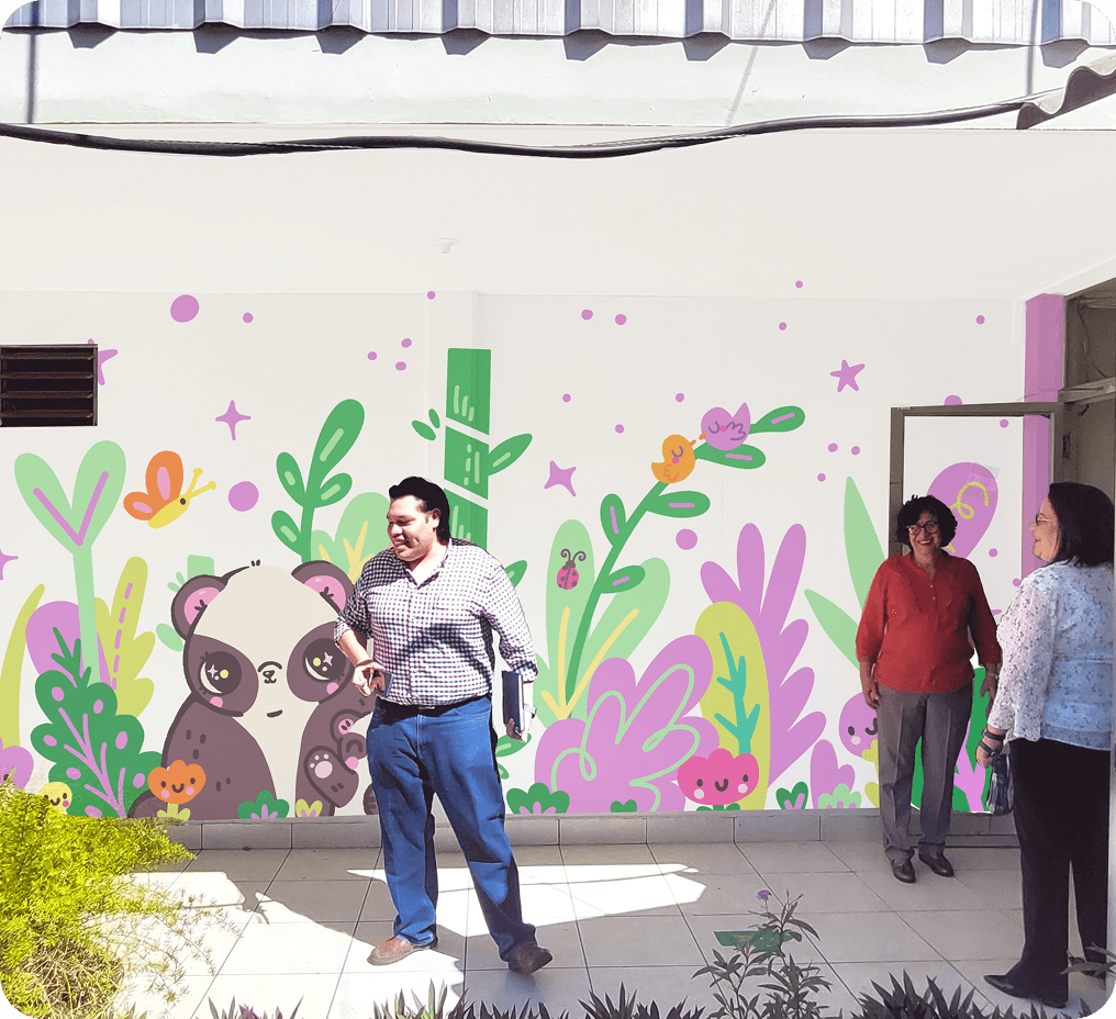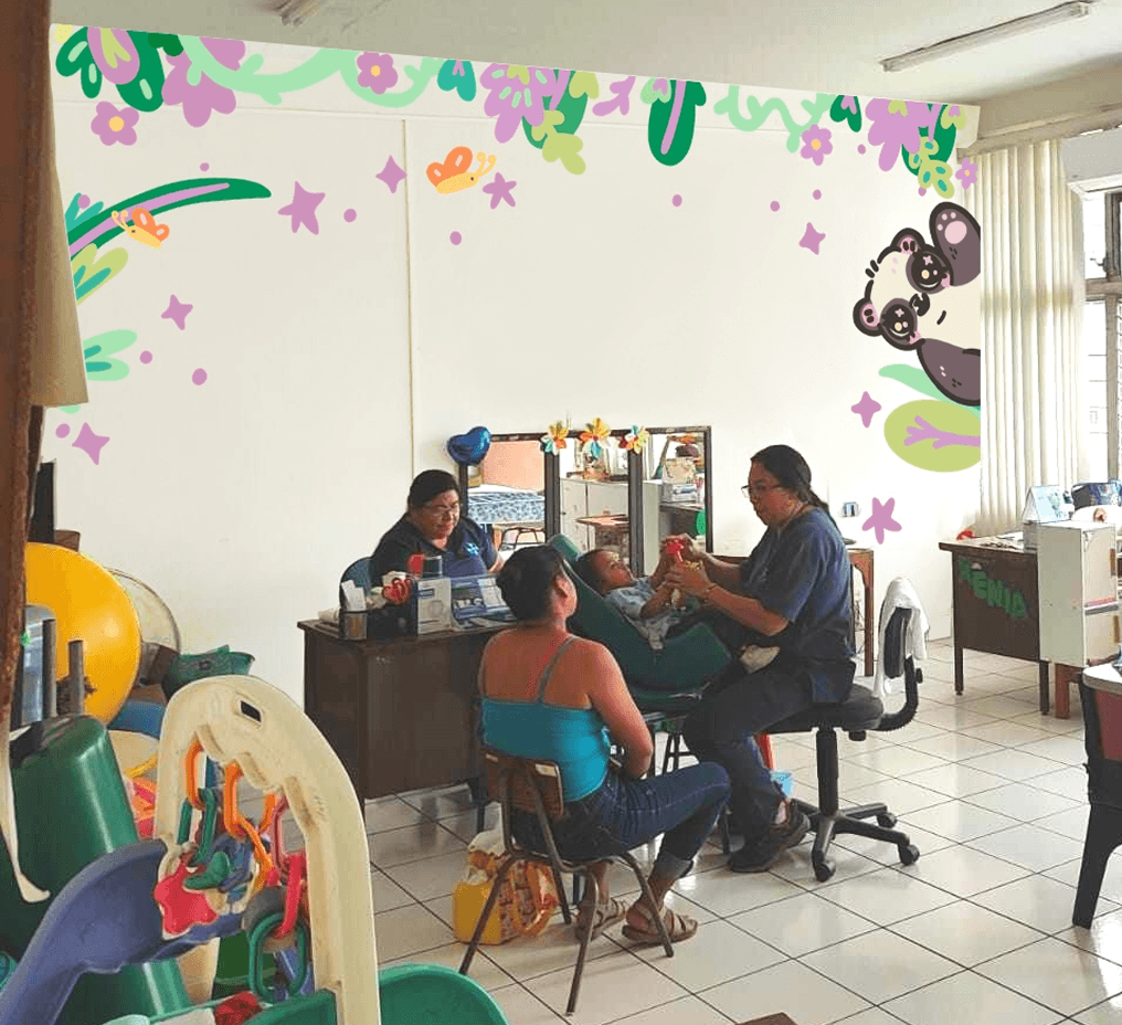 I improved the visitor experience at CRINA by designing characters and murals for the Psychology and Occupational Therapy areas. I created a character system and an accessible color palette to make navigation more inclusive, warm, and easy to understand for children, teens, and their families.